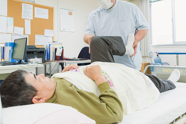 病気やケガなどによって身体が不自由になった患者様に対し、座る、立つ、歩くなどの基本的な身体能力の回復や向上のために運動療法や日常生活動作訓練、物理療法などの手段を用いて個別にリハビリを行います。物理療法では温熱治療や電気治療、牽引などを用い、症状の改善を目指します。